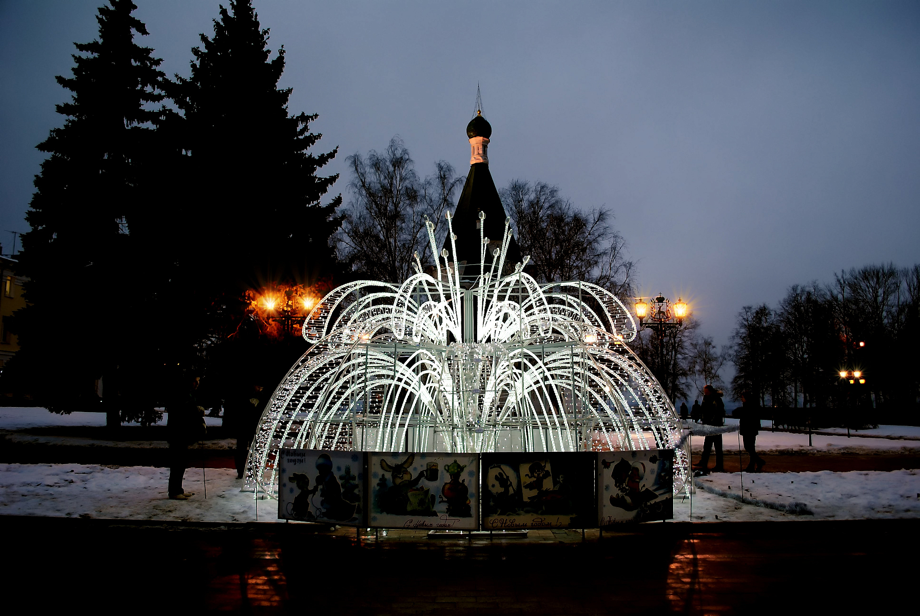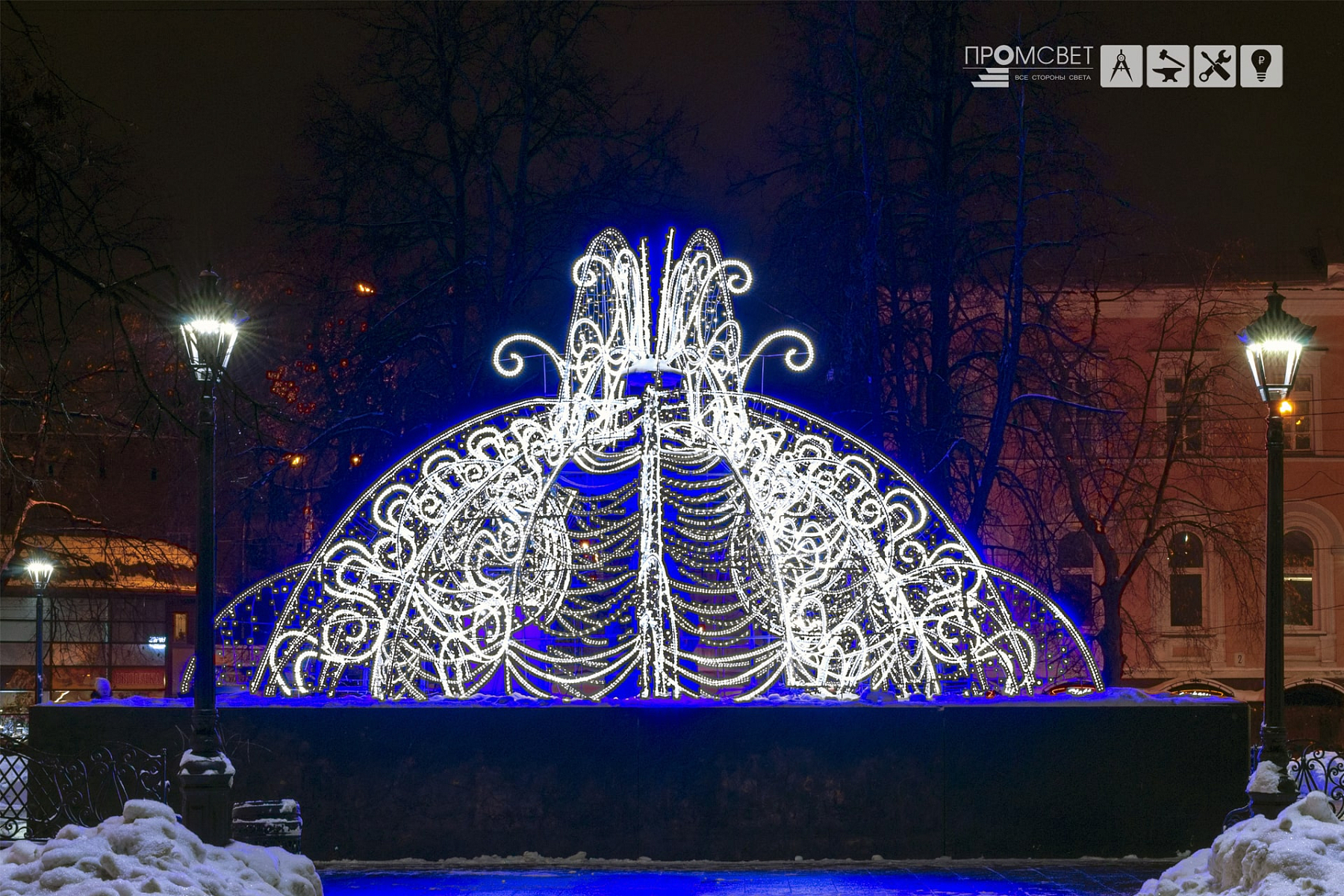 Создадим неповторимую праздничную атмосферу с помощью различного вида фонтанов, консолей, перетяжек и авторских светодиодных конструкций, реализуем проект оформления любого масштаба и сложности.